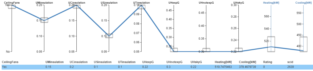 - Fase 2. Elaborar un càlcul paramètric mitjançant 3.072 simulacions del potencial de rehabilitació energètica de l’envolupant tèrmica de l’edifici plantejant actuacions en façanes, cobertes, terres exteriors, tancaments interiors i obertures exteriors. A partir d’una sèrie de paràmetres que es varien i combinen entre simulacions s’obté una distribució de resultats en funció del grau d’actuació sobre la pell de l’edifici.